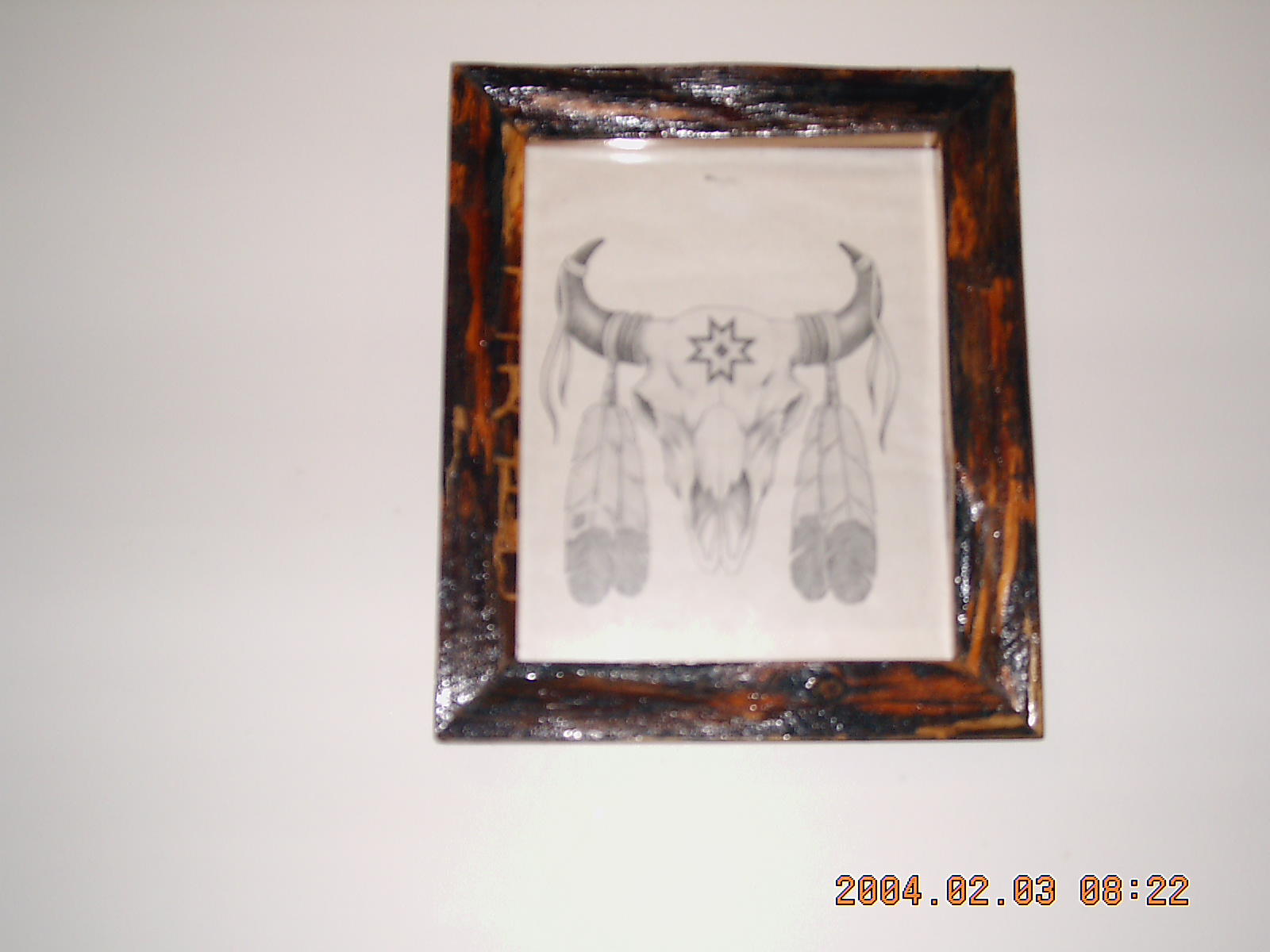 Aromatic red cedar rustic picture frames. Pictured is an 8 x 10 skip peeled frame, $45.00. All sizes available. Prices vary to size of frame.NOT AVAILABLE AT THIS TIME Drawing not included.